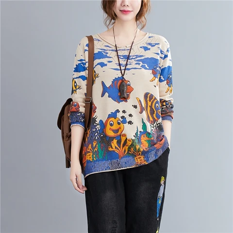 Loose plus size sweater Solid color big round neck long sleeve pullover sweater