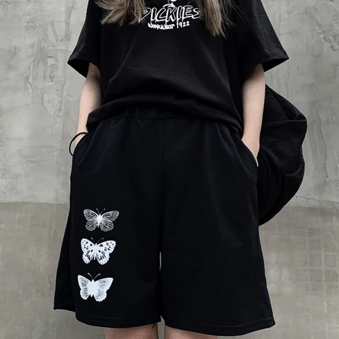Women Summer print Shorts Solid Wide-leg Knee-length Harajuku Simple Ins Trendy All-match Students Chic skinny plus size Casual