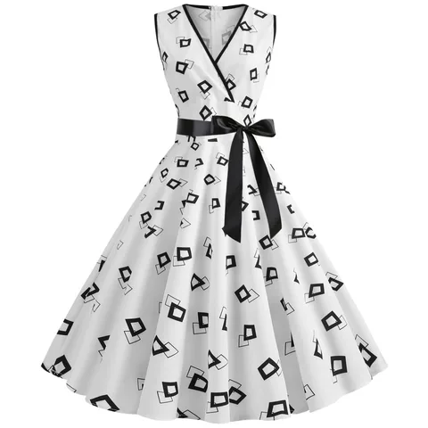 Dress retro print sleeveless summer women's casual pocket O-neck loose dress elegant female plus size banquet dress ins fashion