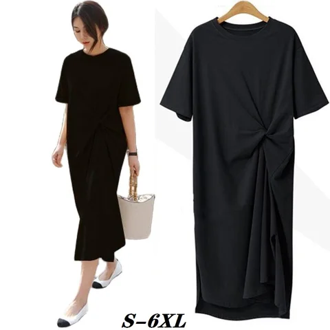 Korean Version Of Sundresses For Women Summer 2021 FAshion Plus Size Casual Women Dresses New Slim Long T-shirt Dress