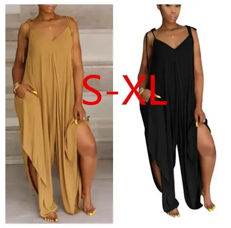 Women Rompers Long Spaghetti Strap Jumpsuit V Neckline Halter Slim Solid Plus Size Romper Sexy Bodysuit Rompers Womens Jumpsuit