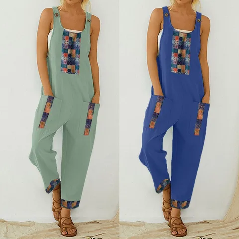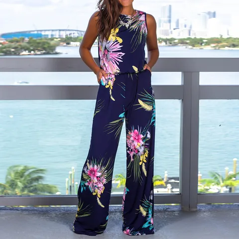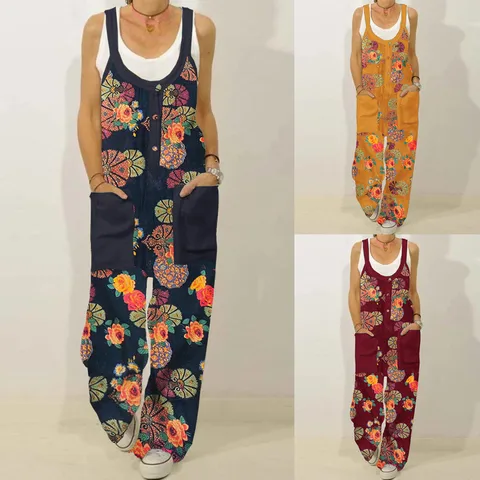 Plus Size Jumpsuits Women Sleeveless Jumpsuit Boho Floral Print Rompers High Waist Long Jumpsuit Monos Mujer Jumpsuit Women