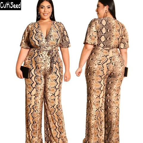 Cultiseed Women Plus Size Jumpsuits Clothing Female Snake Print One Piece Jumpsuits Rompers Ladies Straight Long Pant Jumpsuit