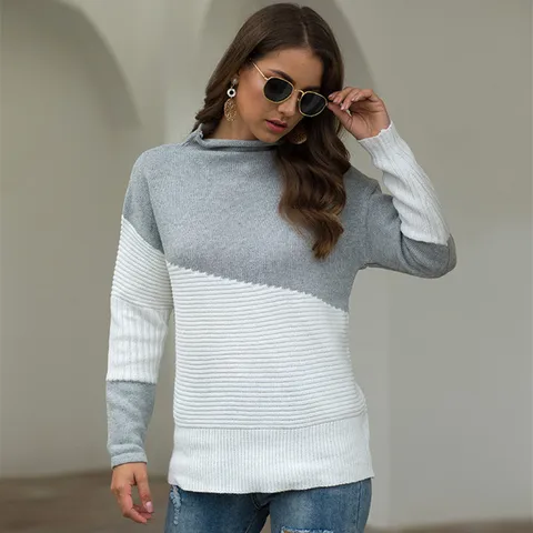 Autumn Turtleneck Sweaters Women Plus Size 3 4 XL Casual Knitting Sweater Pullovers Pink Gray Black KKFY332