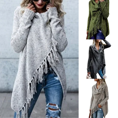 2019 Women Long Sleeve Loose Sweater Knitted Coat Jacket Outwear Casual In spring, autumn pullovers plus size sweater
