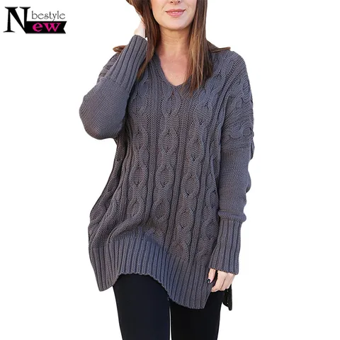 Newbestyle 2019 Women Casual V Neck Loose Fit Knit Sweater Pullover Top Soft Knitted Sweater Pull Femme Plus Size Basic Sweaters
