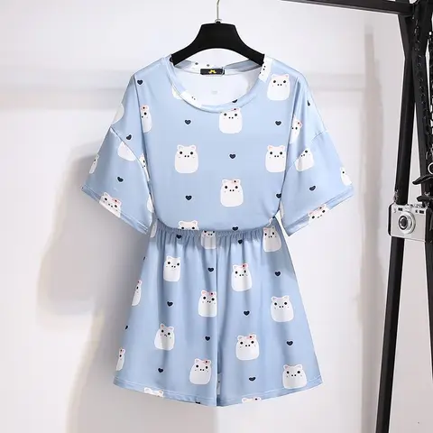 Summer Women T Shirt S-5XL Plus Size Cotton Lovely Moon Cat Print Short Sleeve Lady Tees Tops Casual Loose O-Neck Female TShirt
