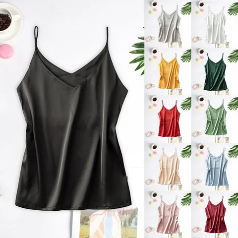 Spaghetti Strap Top Women Halter V Neck Basic White Cami Sleeveless Satin Silk Tank Tops Women'S Summer Camisole Plus Size