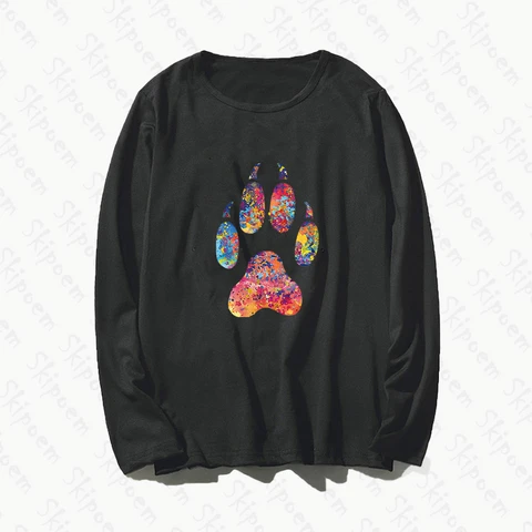 Nordic Oil Painting Beast Footprints Tshirt Women Harajuku Tumblr Punk Vintage Plus Size Long Sleeve Cotton Top Tees Streetwear