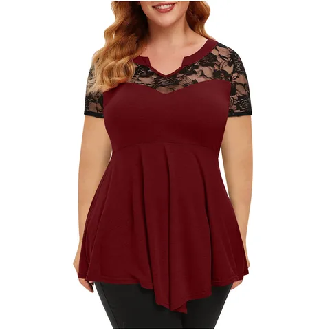 Plus Size Tops Women's T-shirt Elegant Hollow Lace Casual Tops 2021 New Short Sleeve Summer Blouses Women's O-Neck Tops 5XL