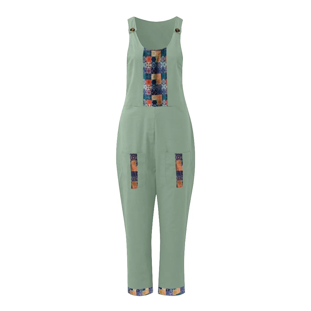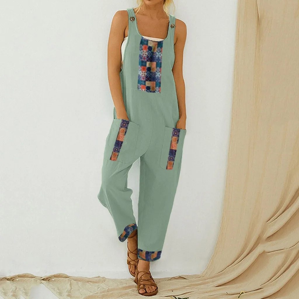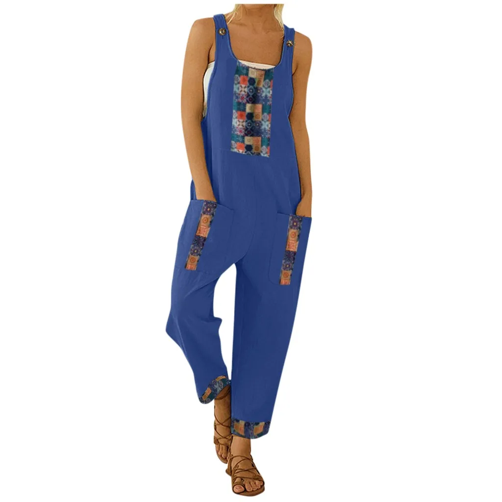 2020 Women Casual Boho Print Pocket Romper Long Playsuit Strap Button Jumpsuit One-piece Wide leg pants Rompers Plus Size F1