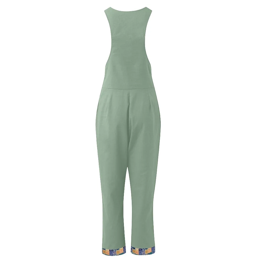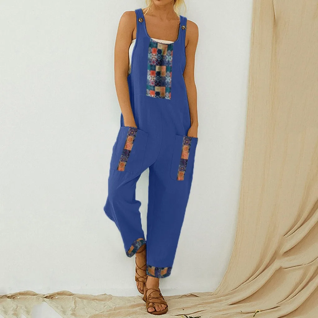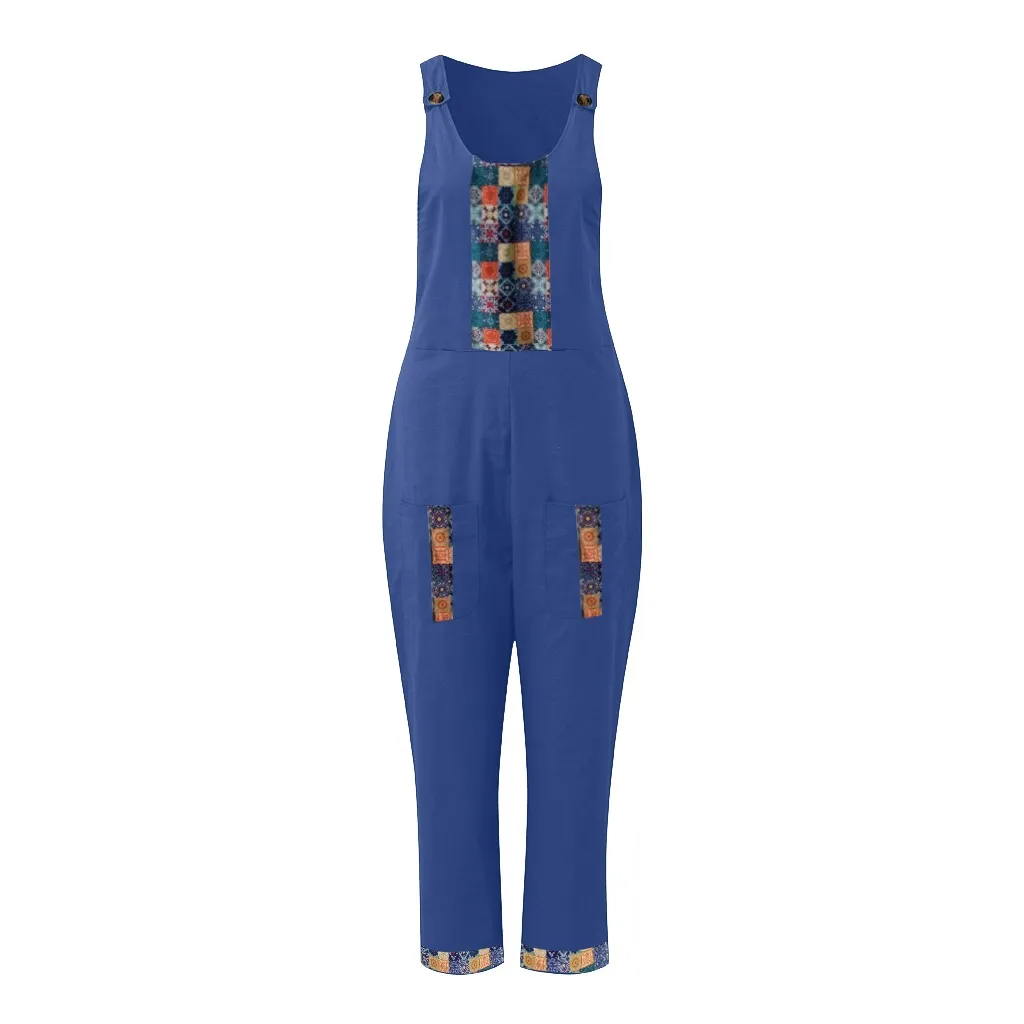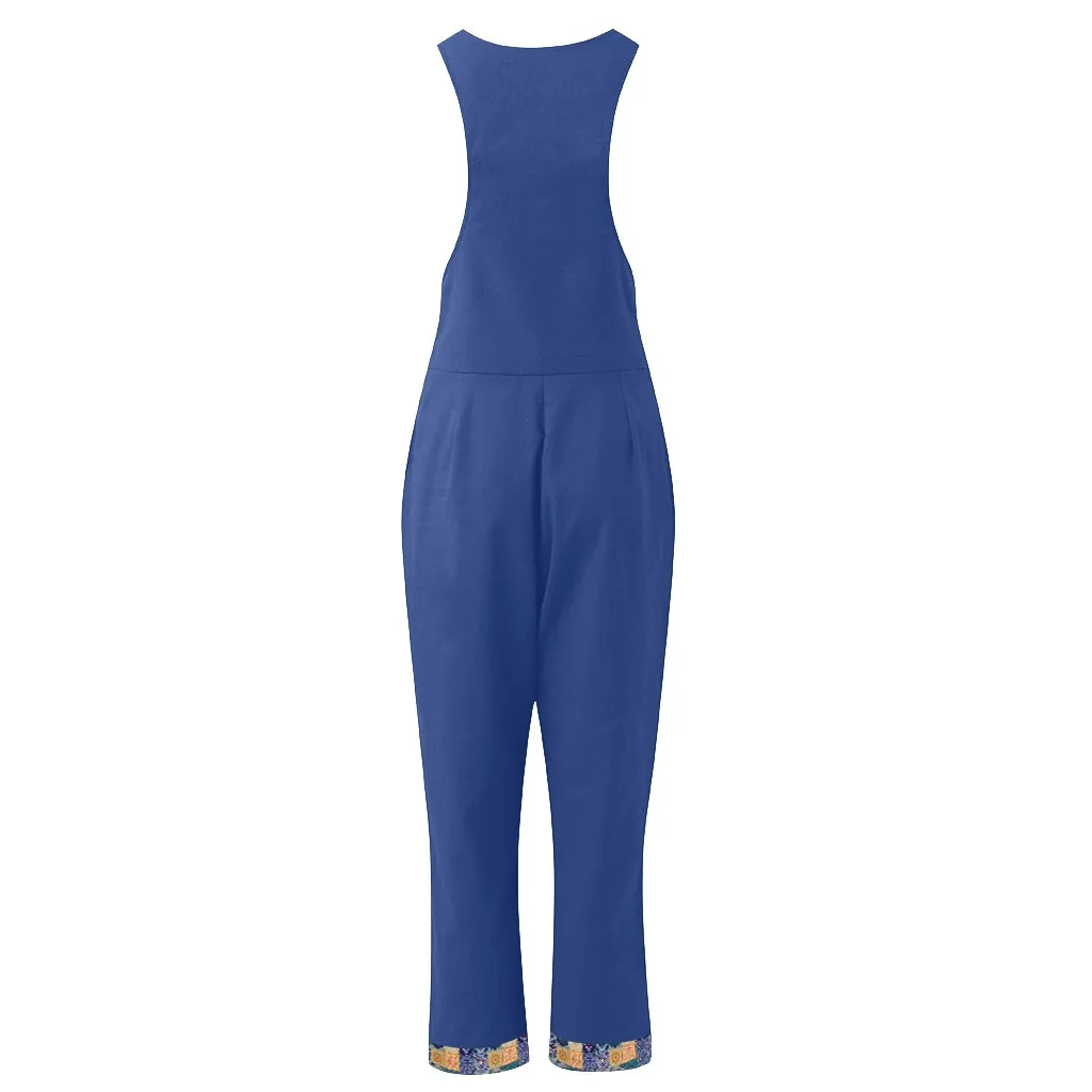 2020 Women Casual Boho Print Pocket Romper Long Playsuit Strap Button Jumpsuit One-piece Wide leg pants Rompers Plus Size F1