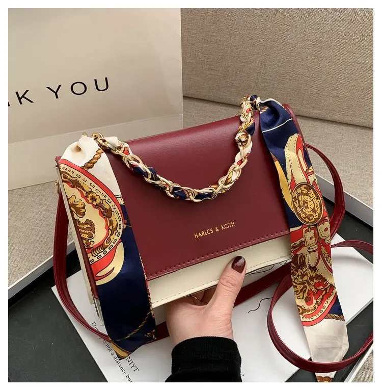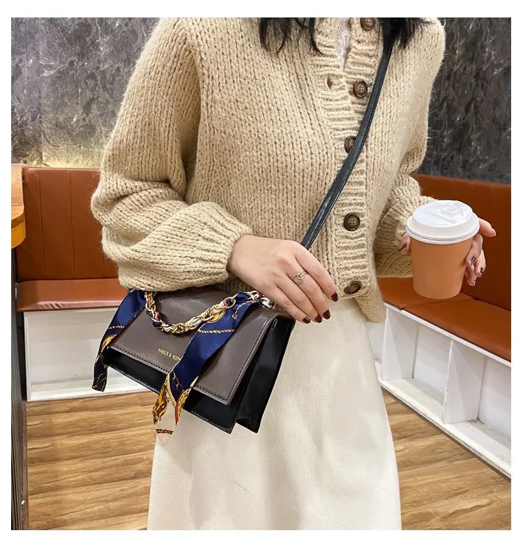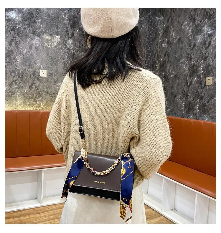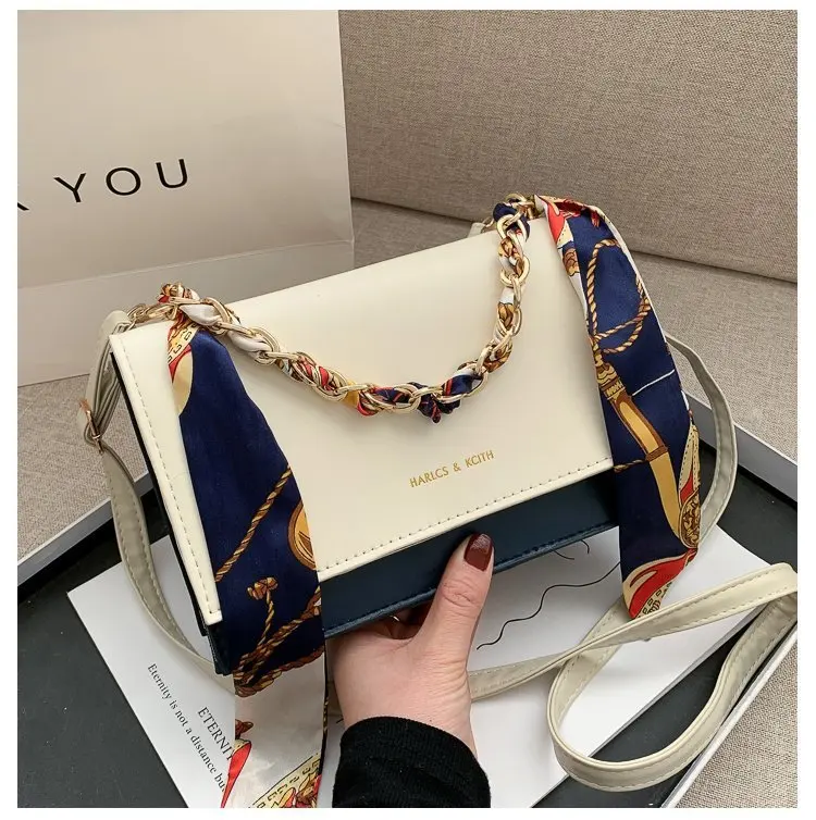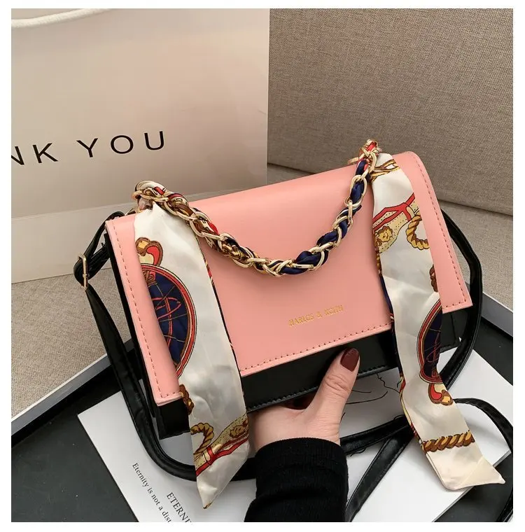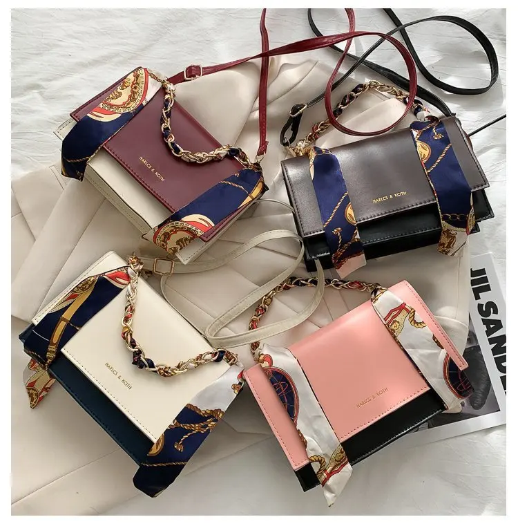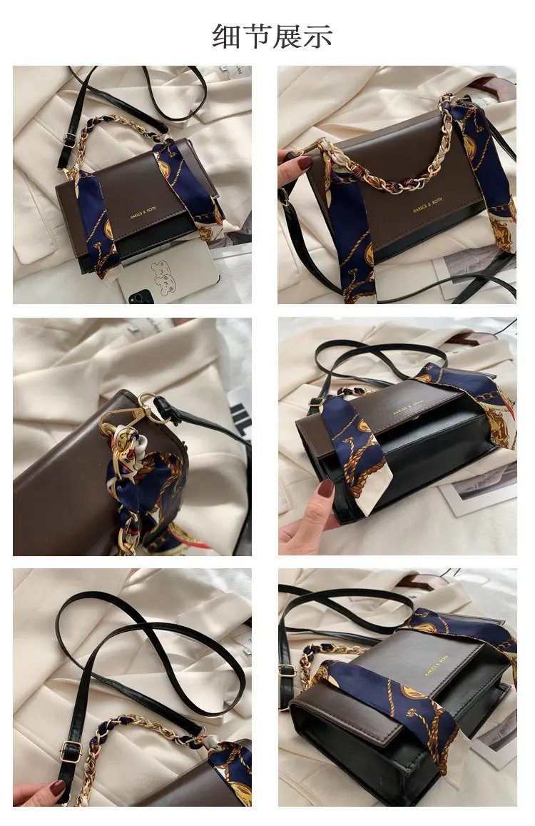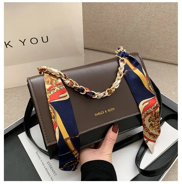 Western Style Women One-Shoulder Handbags 2021 New Trend Fashion Messenger Silk Scarf Chain Portable Small Square Crossbody Bag